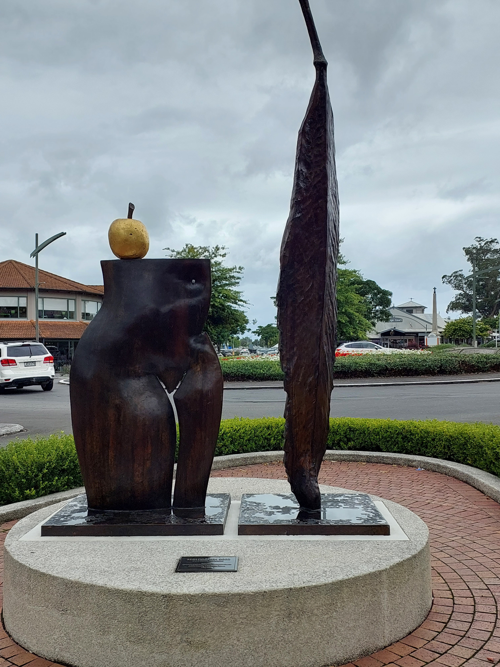 Less than two weeks later the sculpture was removed, not just to quell controversy but as it was purchased by a Havelock North group, using funds from the MTG and the Mills Family Trust to establish it in the middle of the village, siting it outside the Information Centre around the central roundabout. This seemed a good resolution. It was unveiled in a formal ceremony by the Governor General on May 5, 2018. It had returned (nearly) from where it had originally first been shown some 16 years previously. Hawkes’ Bay, as a fruit bowl for the country, and its beauty for tourism was a place that could easily be thought of as a Garden of Eden.